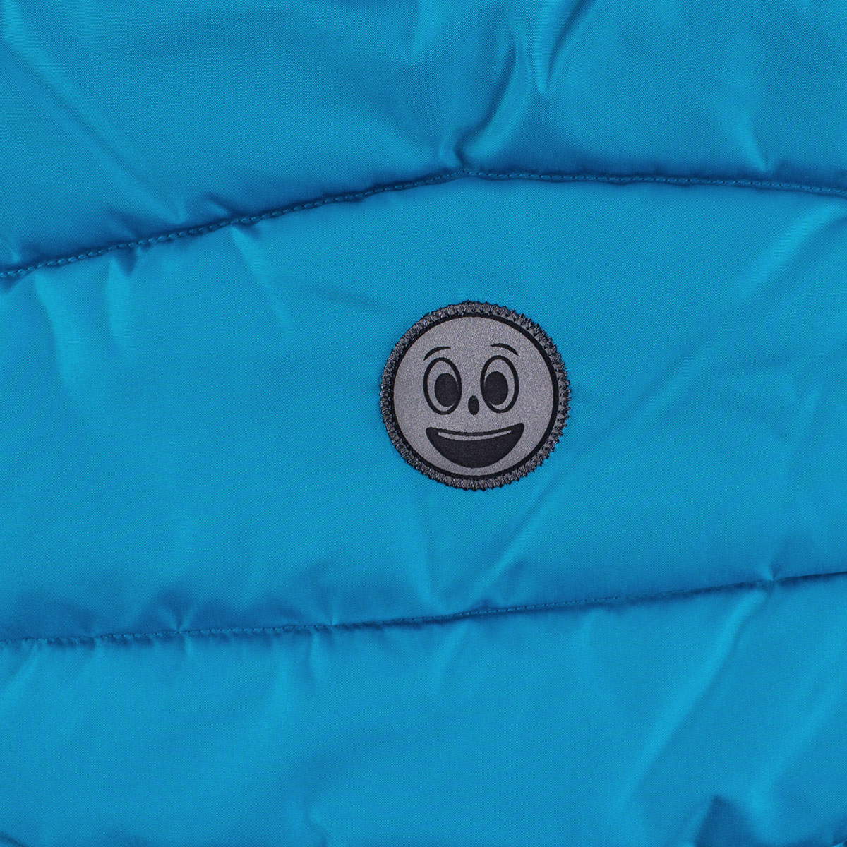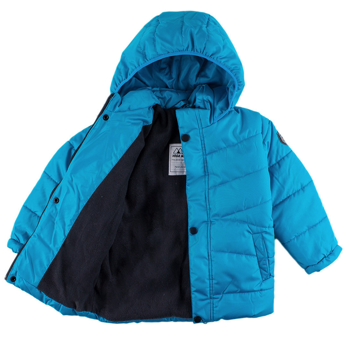 - Якето е в цвят тюркоаз, гащеризонът е в цвят графит