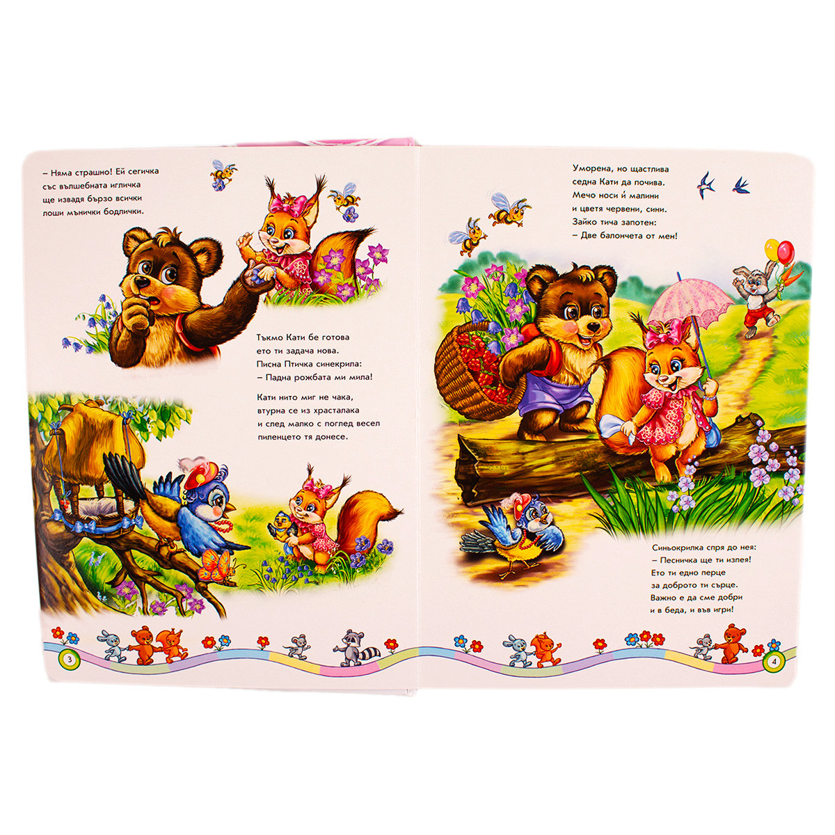 - Приказката е представена с едър шрифт и красиви картинки, приканващи детето да чете само