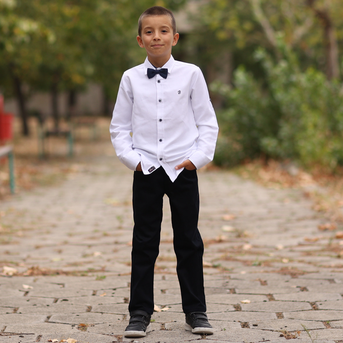 Детска риза с папийонка в бял цвят за момчета