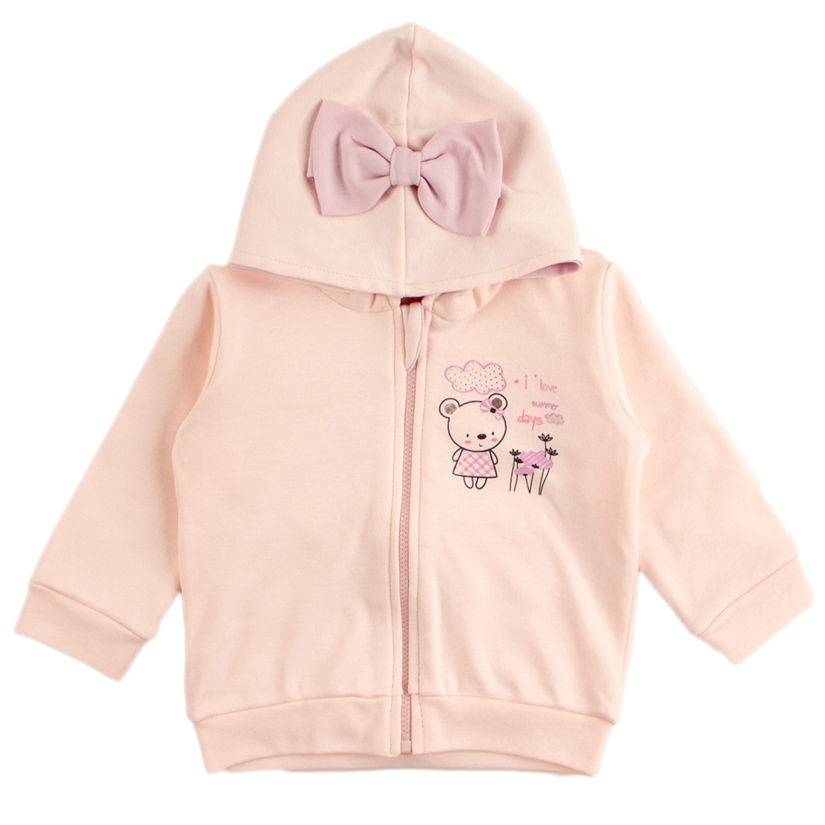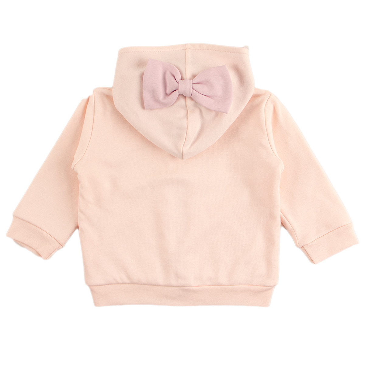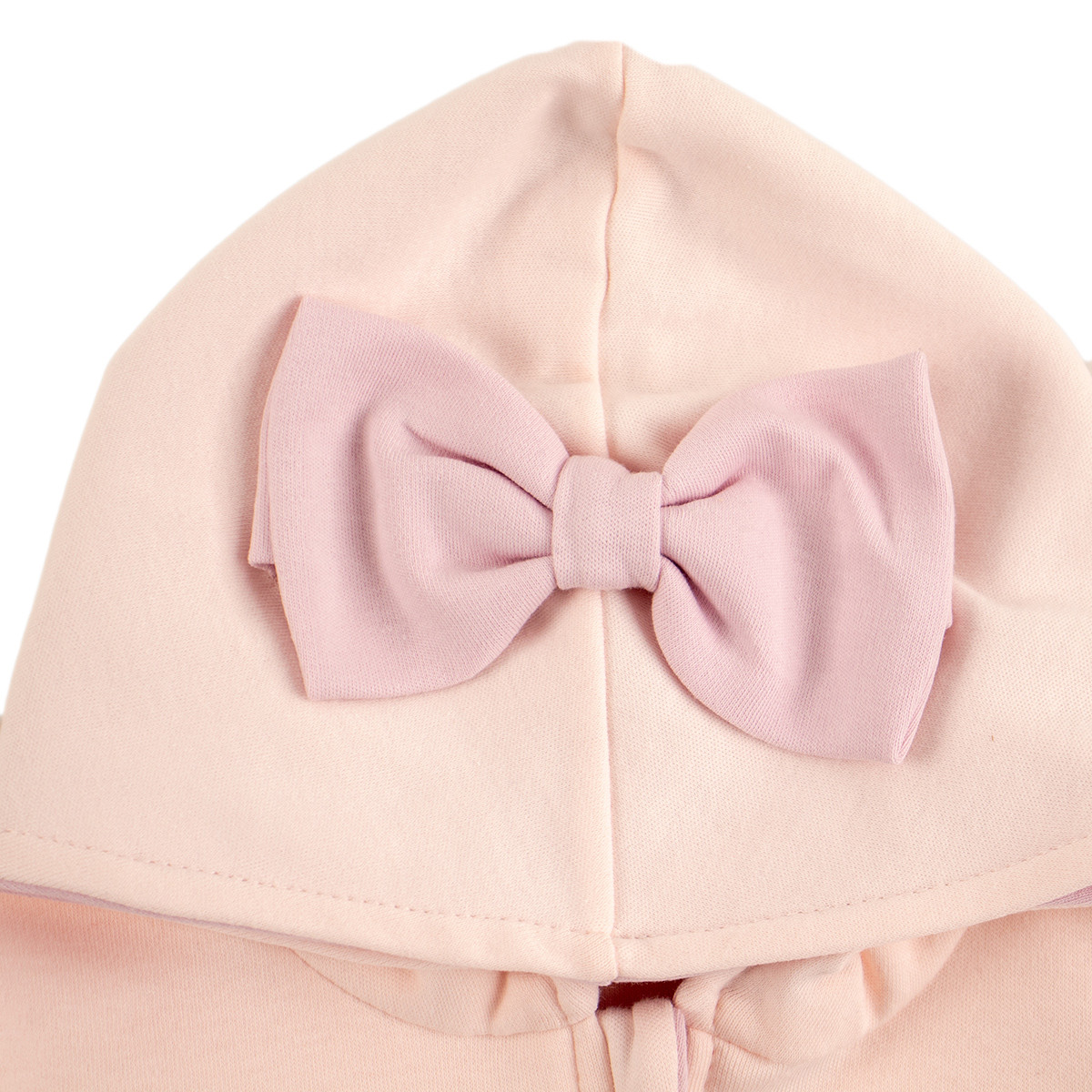 • Голяма светлолилава панделка на качулката