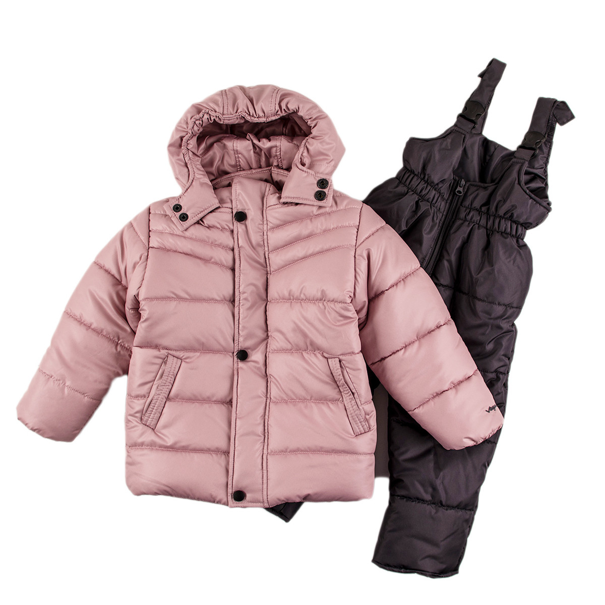 - Якето е в цвят опушено розово, гащеризонът е в графит