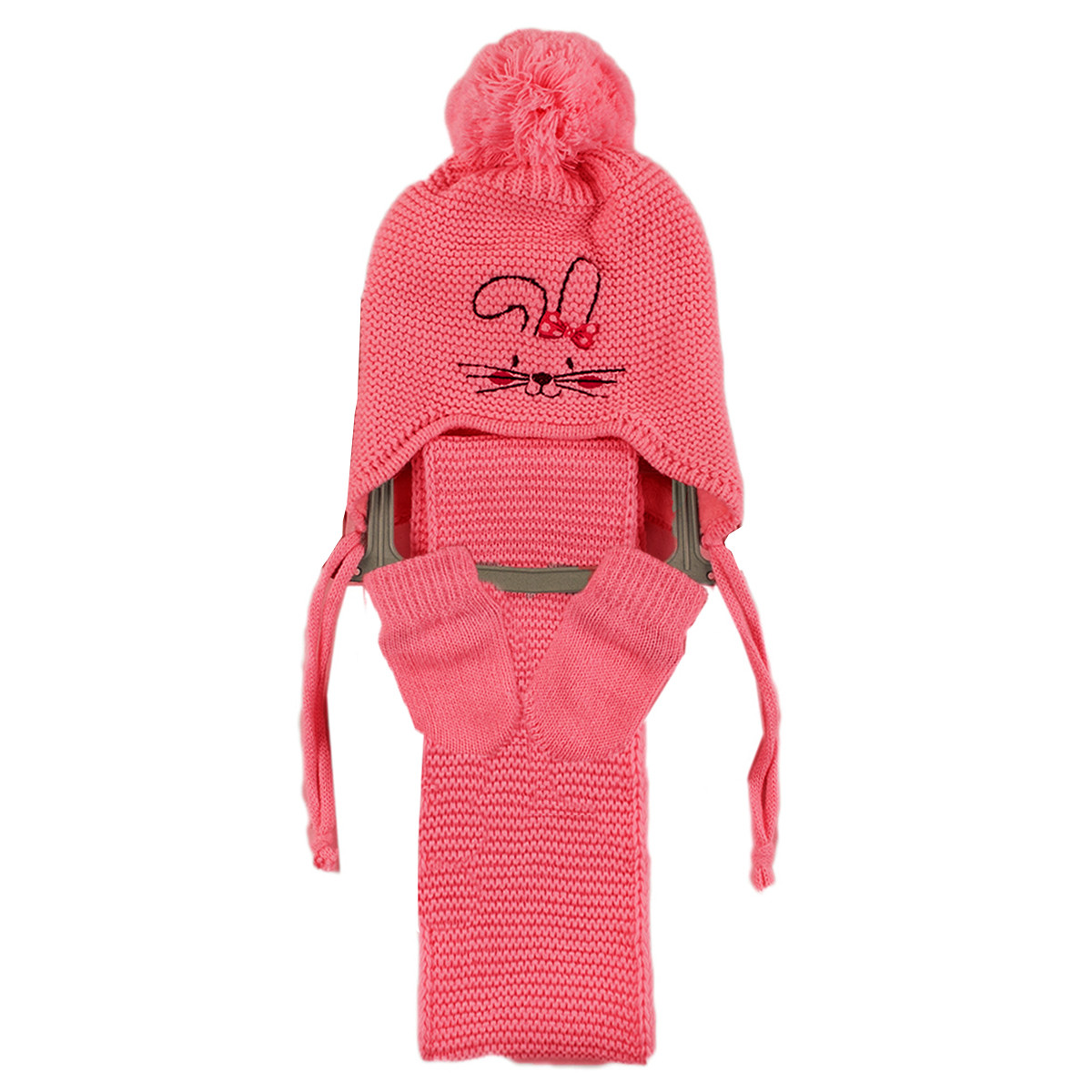 Комплект шал, шапка и ръкавички за момичета със зайче в руж
