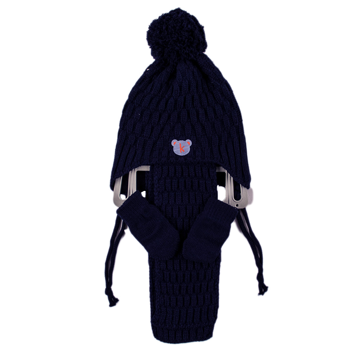 Комплект шал, шапка и ръкавички в тъмносиньо