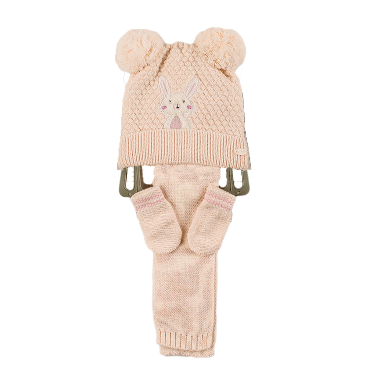 Комплект шал, шапка и ръкавички за момичета със зайче в оранжево