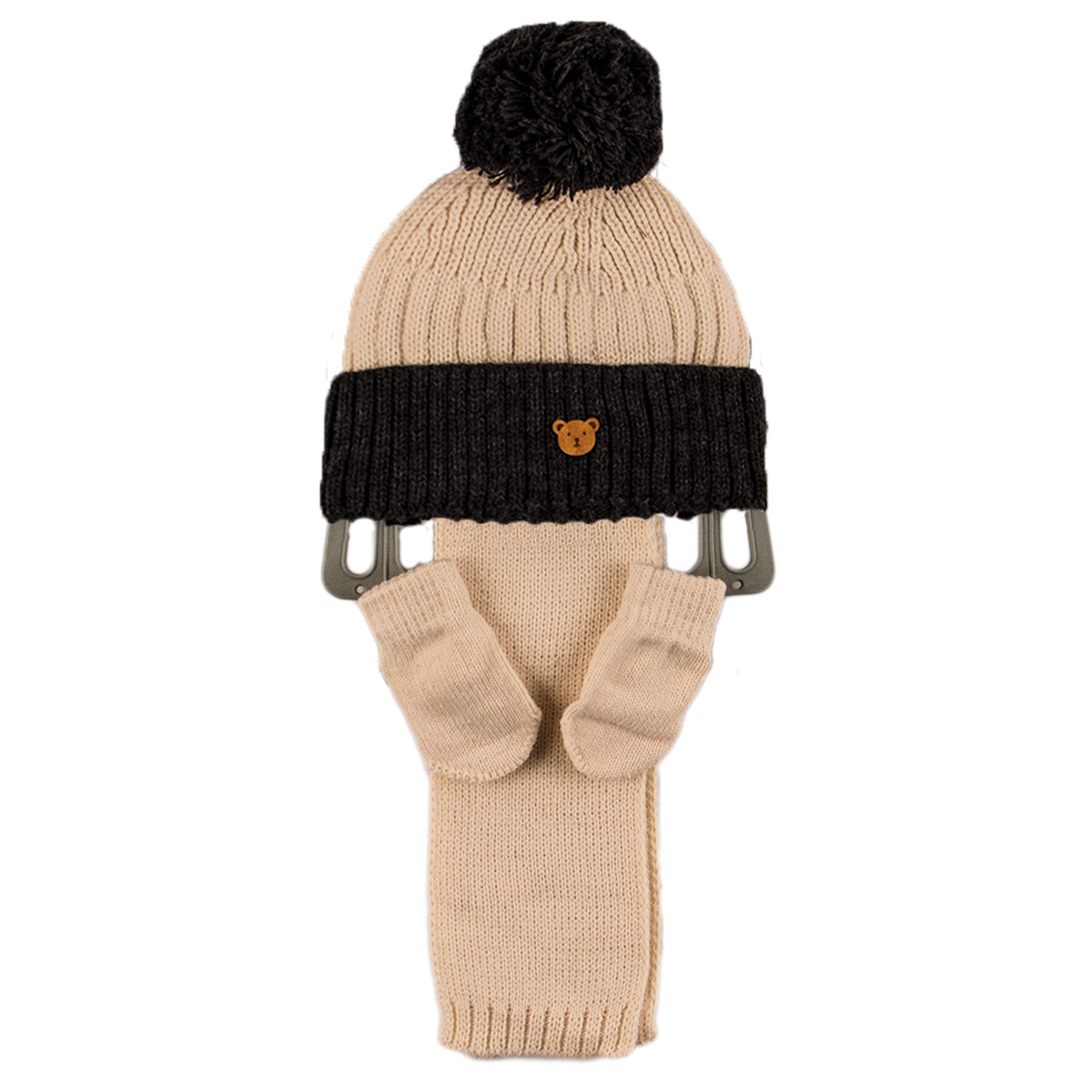 Комплект шал, шапка и ръкавички за момчета в гравит и шампанско