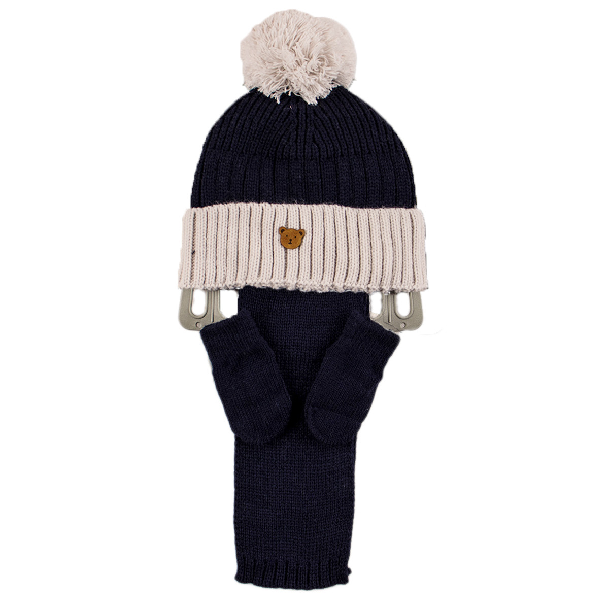 Комплект шал, шапка и ръкавички в индиго и копринено сиво