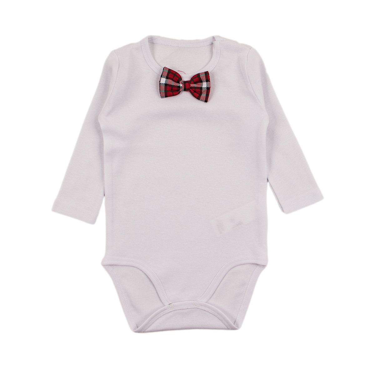 - Бодито е бяло с пришита папийонка в тон с елечето