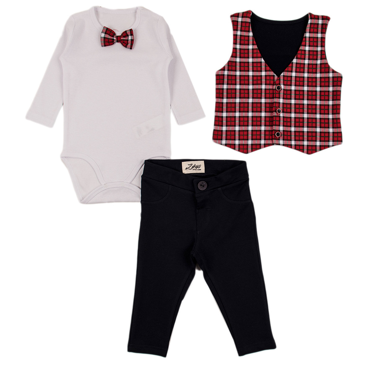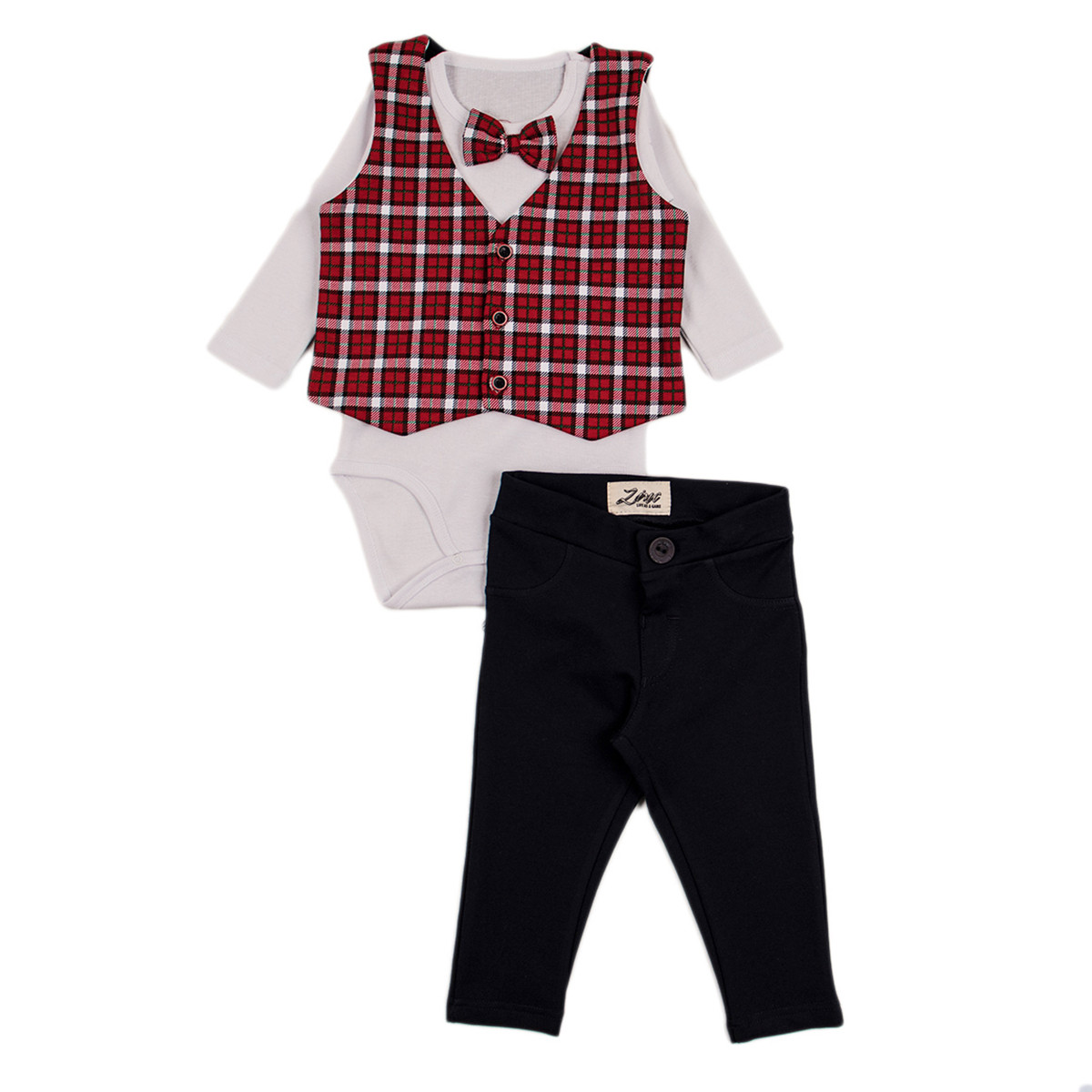 - Комплектът се състои от: елече, боди с дълаг ръкав и панталонче