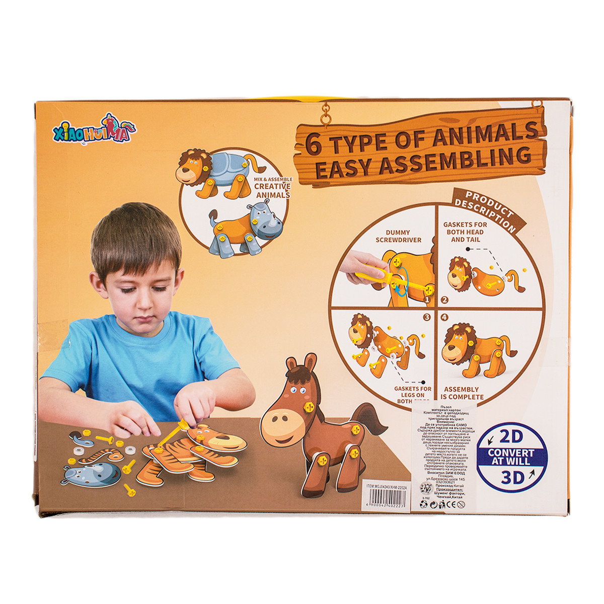 - Съдържа: 6 бр животинки и инструменти за сглобяване им.