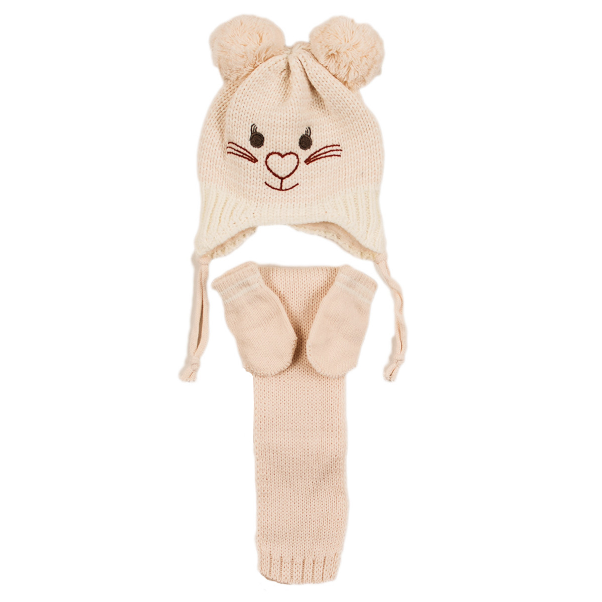 Комплект шал, шапка и ръкавички за момичета в оранжево