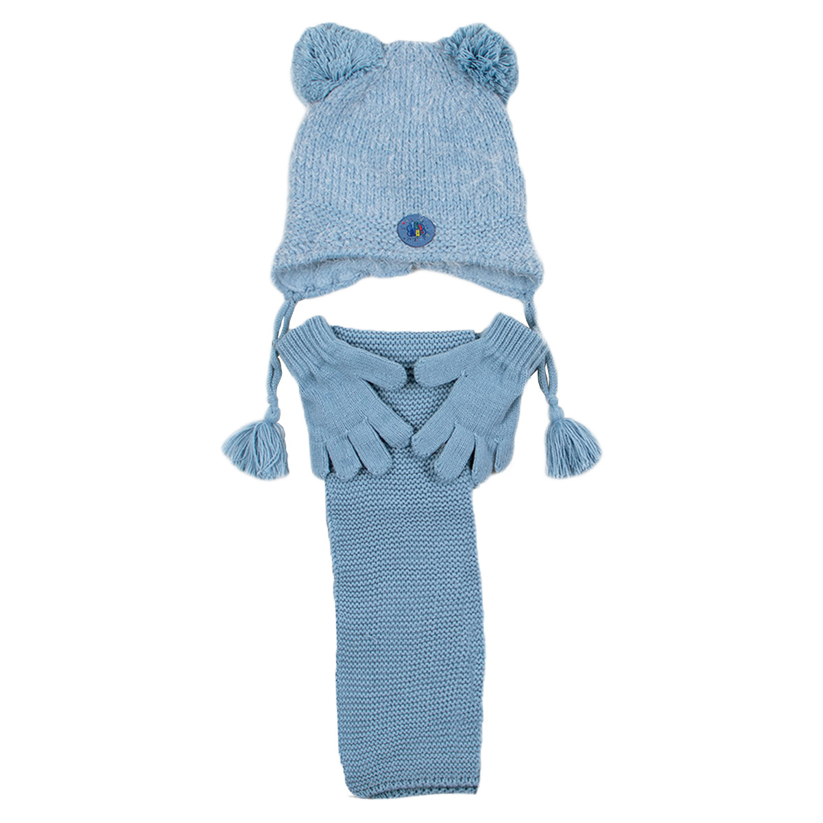 Комплект шал, шапка и ръкавички за момчета в пастелно синьо