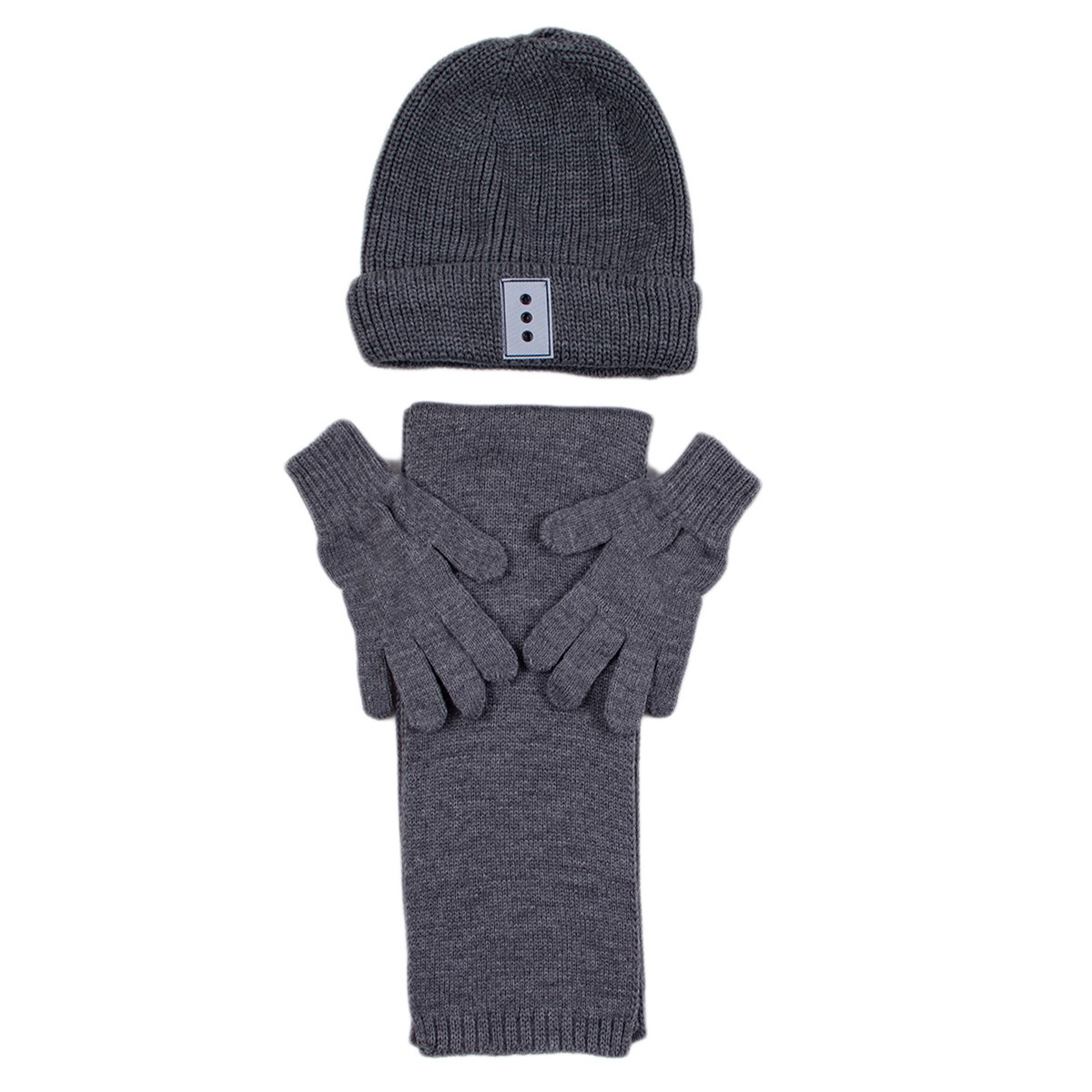 Комплект шал, шапка и ръкавички в цвят графит