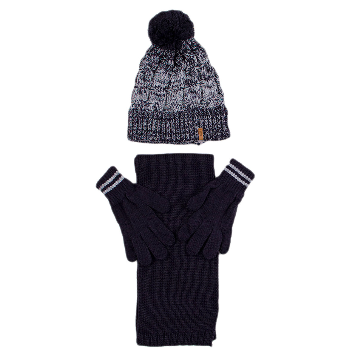 Комплект шал, шапка и ръкавички в цвят индиго и графит