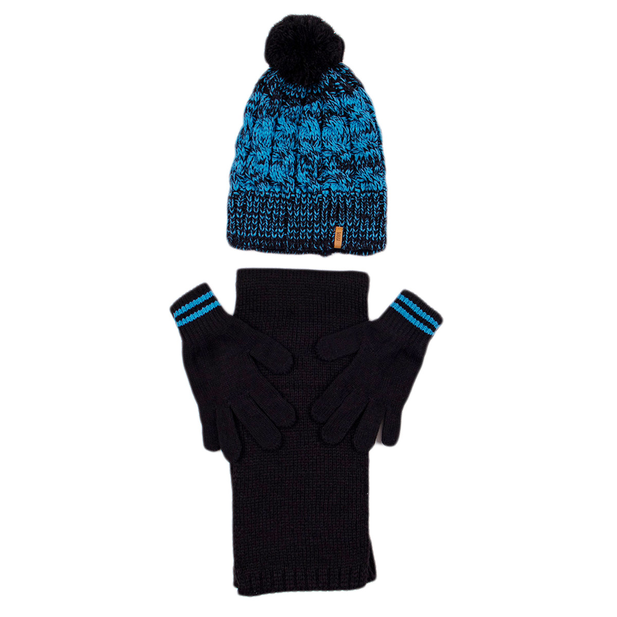 Комплект шал, шапка и ръкавички за момчета в черно и синьо
