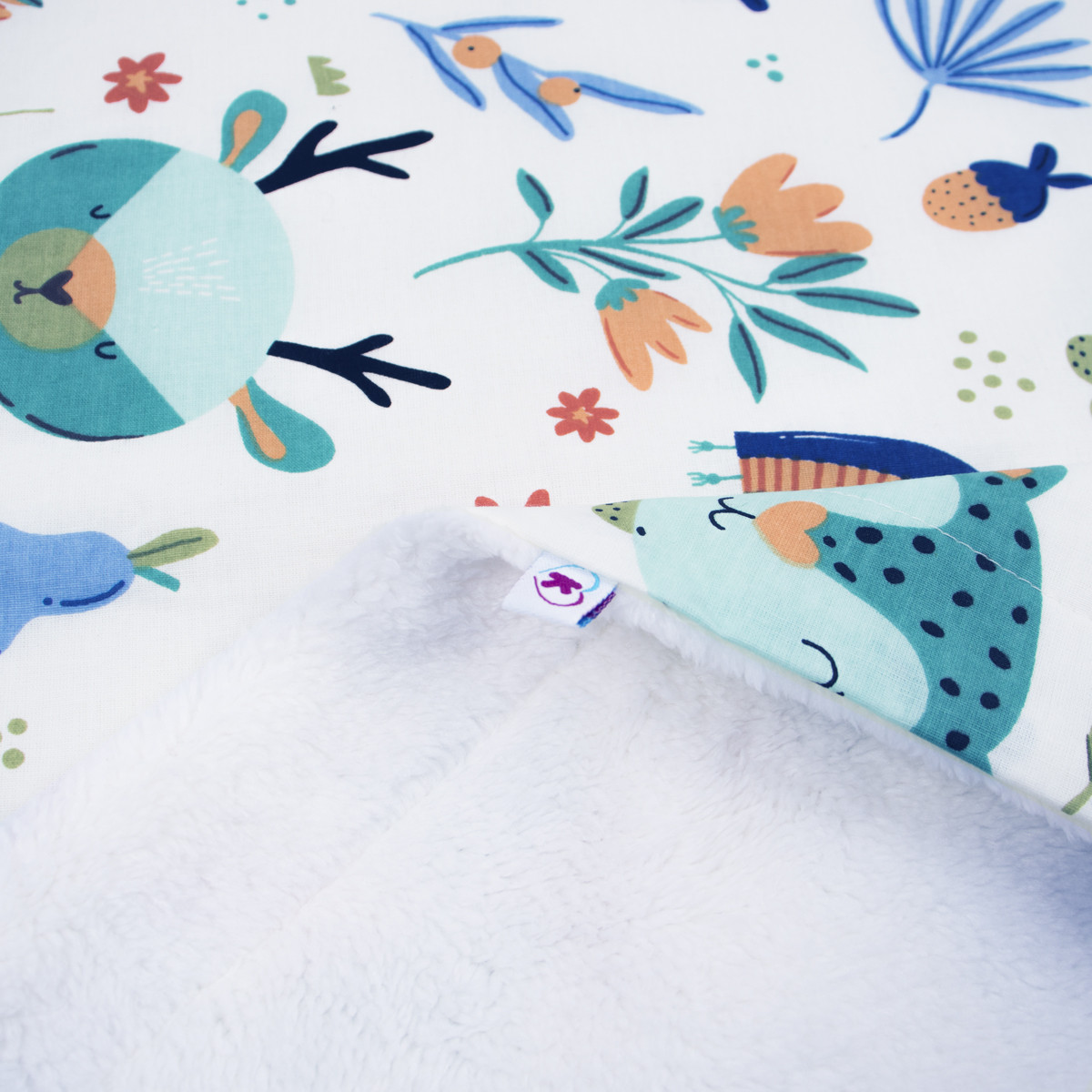 - Пелената е изработена от два пласта, единият е от висококачествено ранфорс хасе в принтиран десен, а другият е от нежна на допир кохавлия в екрю.