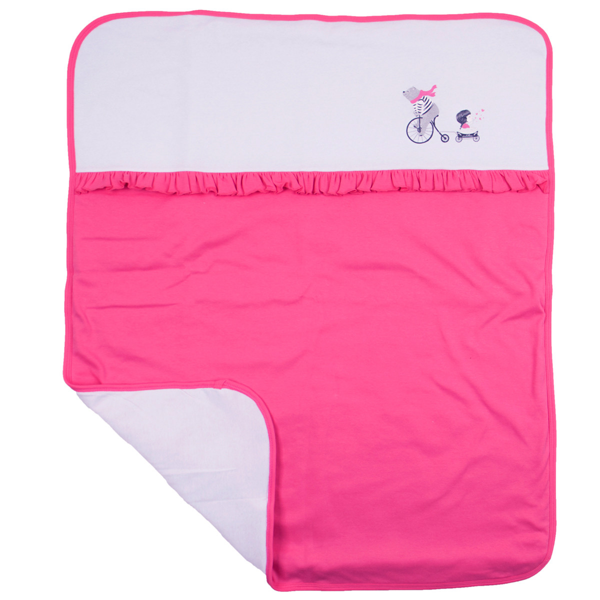 - От едната страна е в розово и бяло, като е украсена е с ефектна къдра и апликация, а от другата е в изчистено бяло с обкантване в розово.