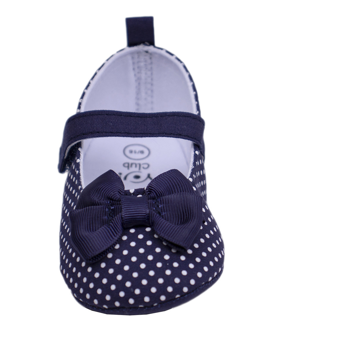 - Елегантни пантофки за момиченца в син цвят обсипан в бели точки.