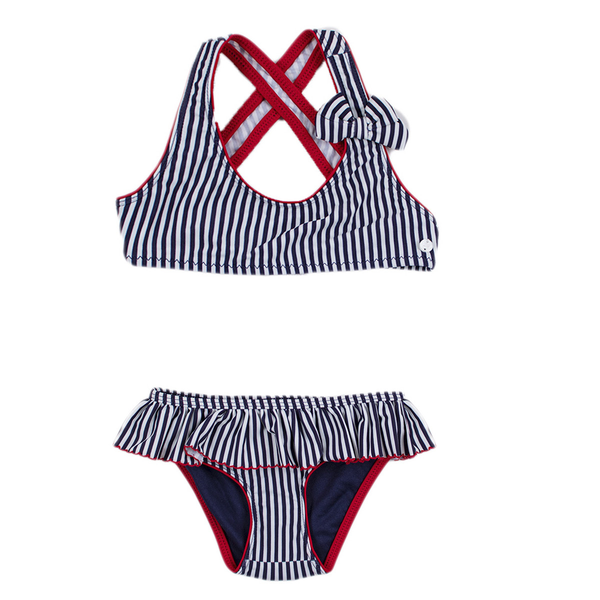 Детски бански от 2 части за момичета в синьо райе