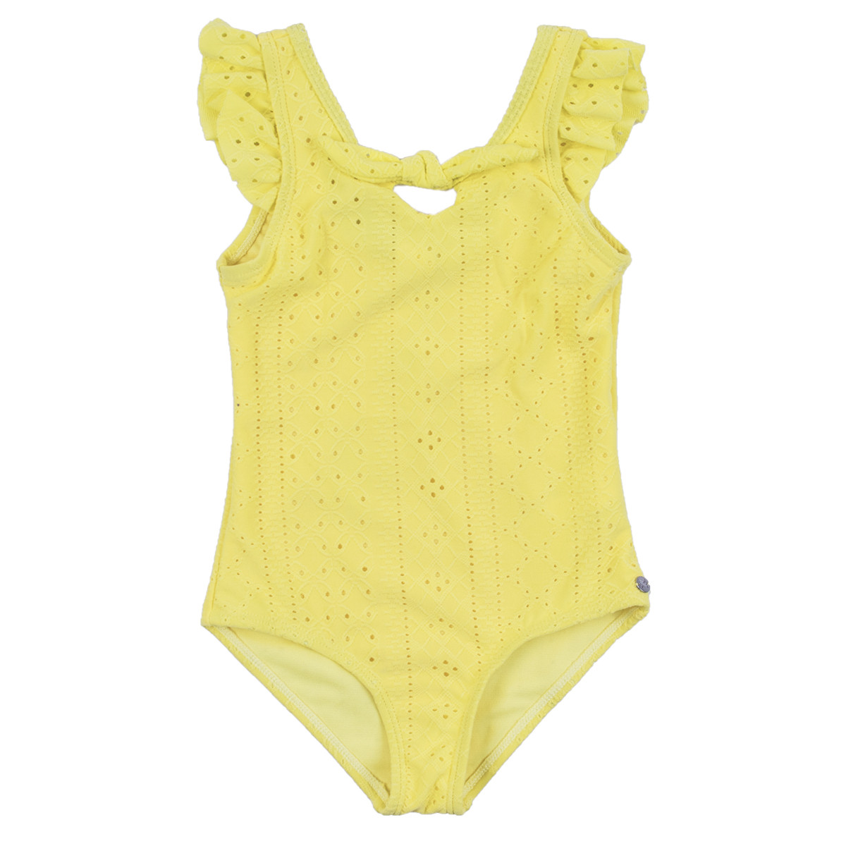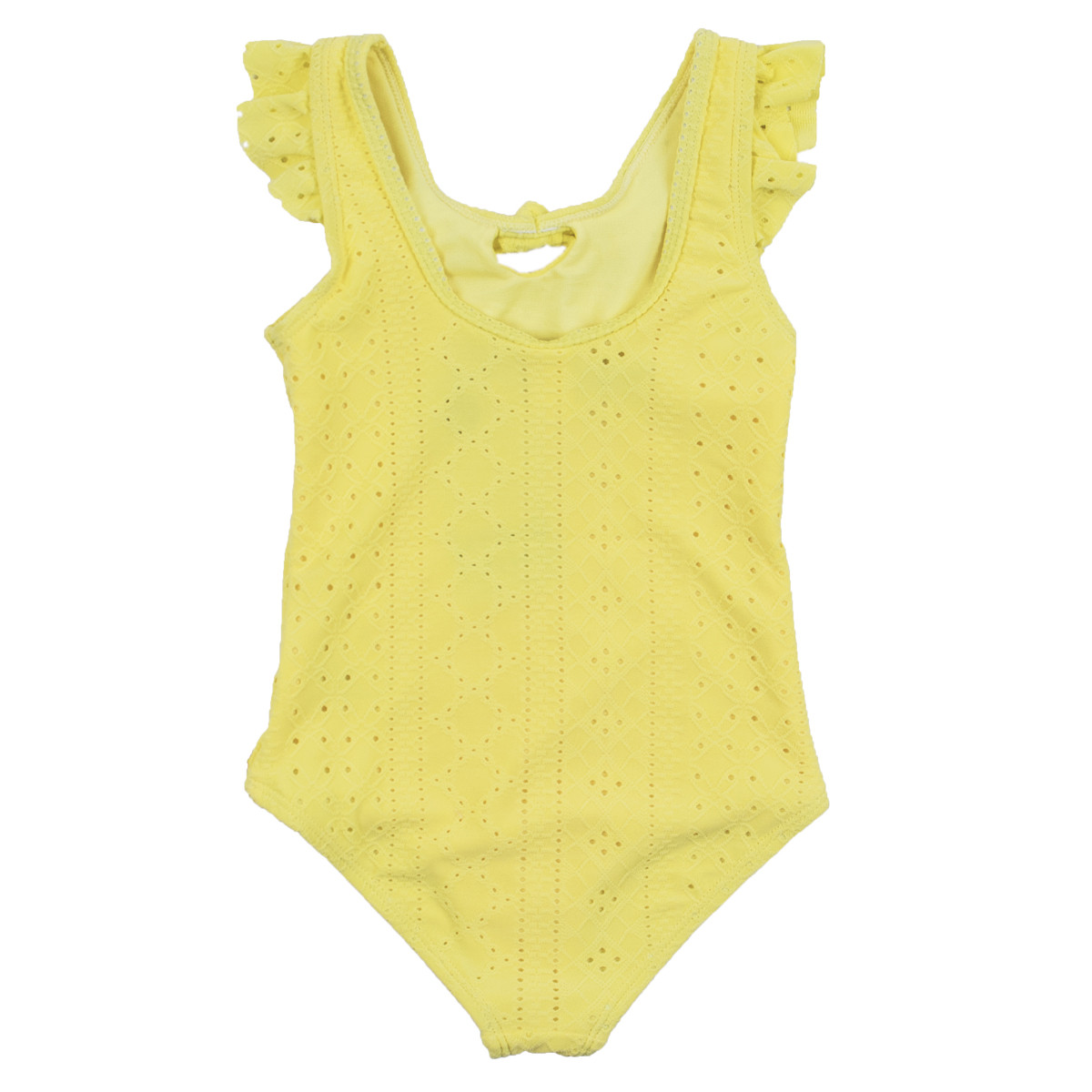 Детски цял бански с рязана бродерия в жълто