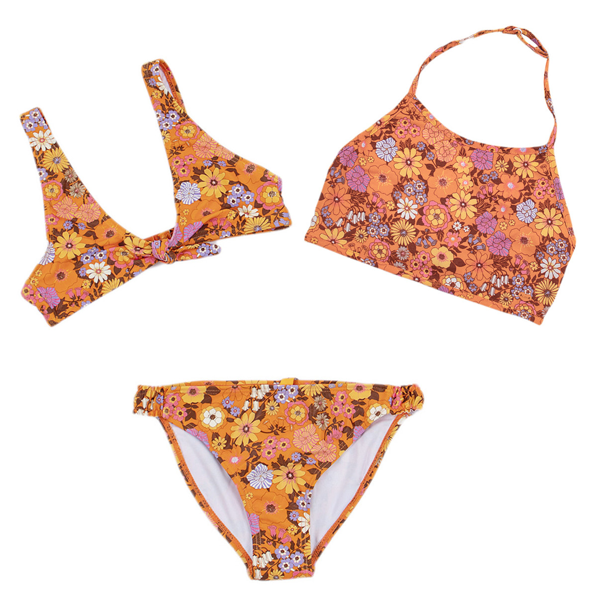 Детски бански от 3 части за момичета "Flower" в оранжево