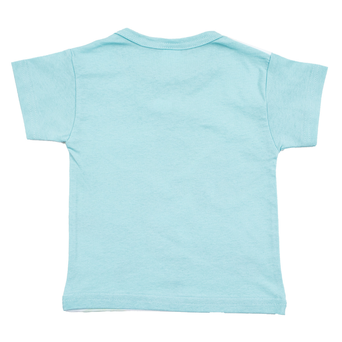 - Тениската е в синьо-зелен цвят с щампирана картинка отпред