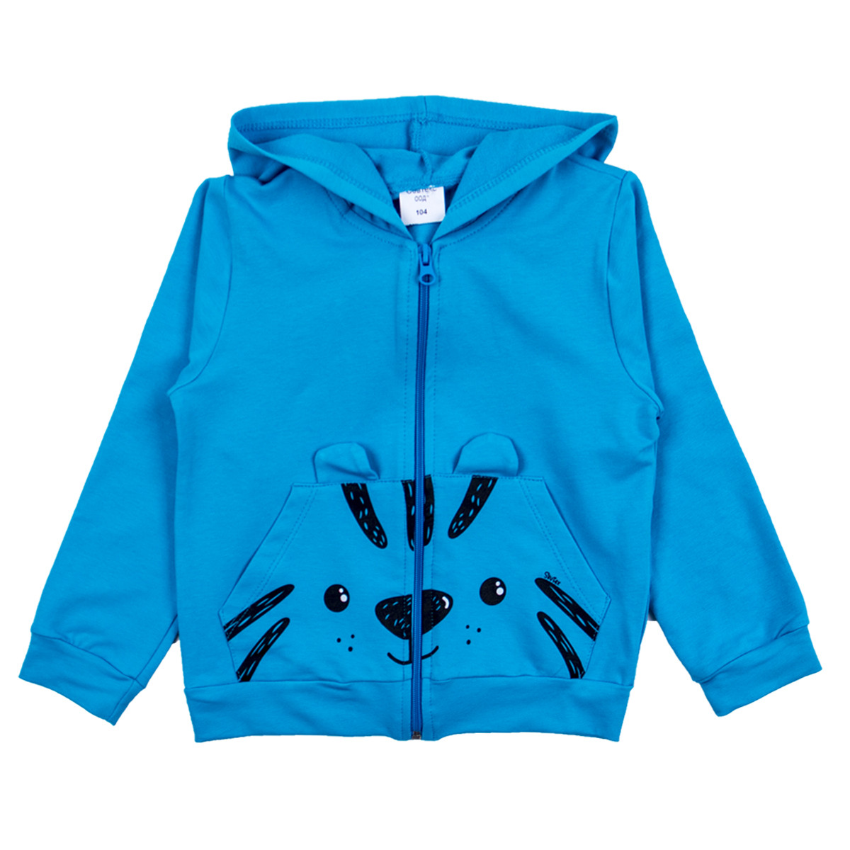 - Има две джобчета отпред със щампи и пришити текстилни елементи наподобяващи глава на тигътче.