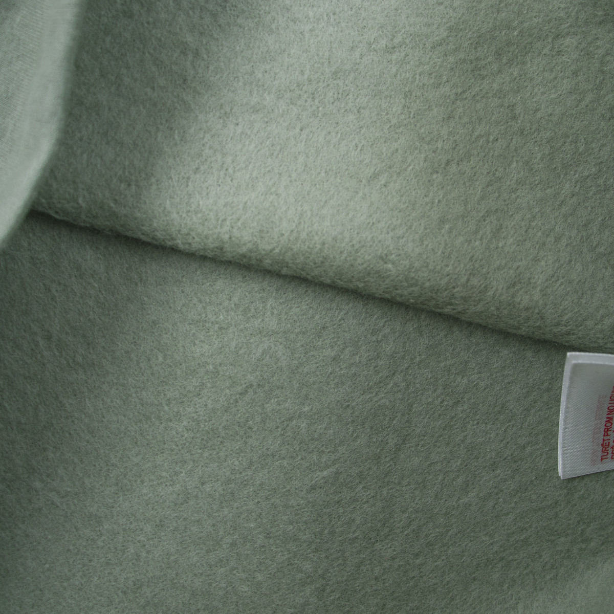 - Цвят: светлозелено, украсено със надписи от бродерия и пришит текстилен елемент в долният й край.