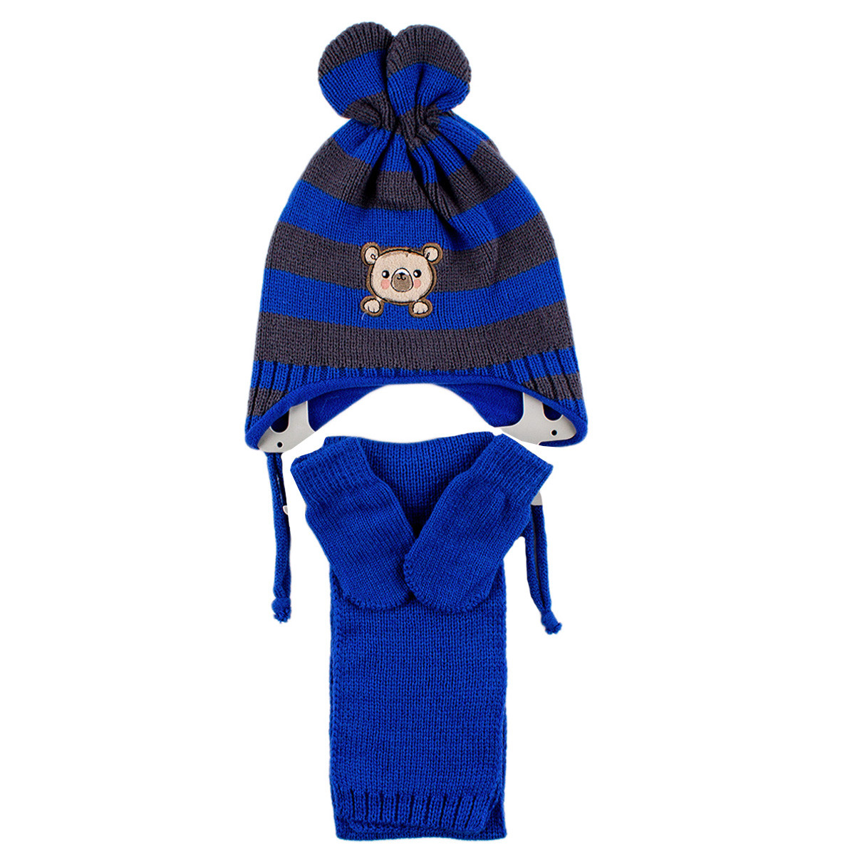 Комплект шал, шапка и ръкавички за момчета в синьо райе (0 - 18 мес.)